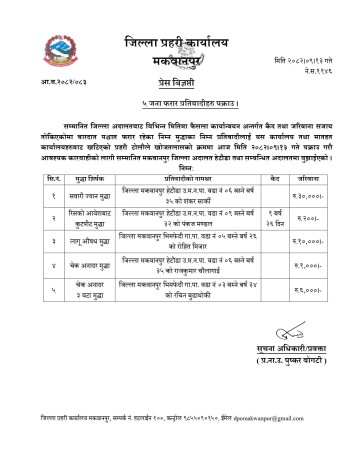 • अदालतको फैसला कार्यान्वयनमा मकवानपुर प्रहरी सक्रिय, ५ जना फरार प्रतिवादी पक्राउ