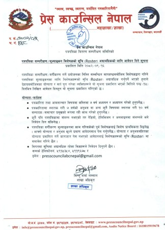 प्रेस काउन्सिल नेपालद्वारा पत्रपत्रिका समरीक्षण विशेषज्ञ सूची अद्यावधिकका लागि आवेदन आह्वान