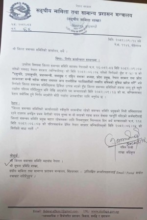 जिल्ला समन्वय समिति प्रमुखलाई सरकारी निजी सवारी सुविधा नदिने सरकारको स्पष्टिकरण