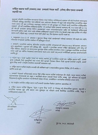 राष्ट्रिय स्वतन्त्र पार्टी र उज्यालो नेपाल पार्टीबीच एकता सम्झौता, नयाँ वैकल्पिक राजनीतिक शक्ति निर्माणको घोषणा
