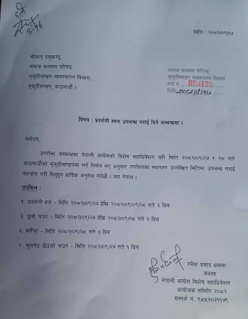 नेपाली कांग्रेस विशेष महाधिवेशनका लागि भृकुटीमण्डपमा प्रदर्शनी स्थल उपलब्ध गराउन अनुरोध